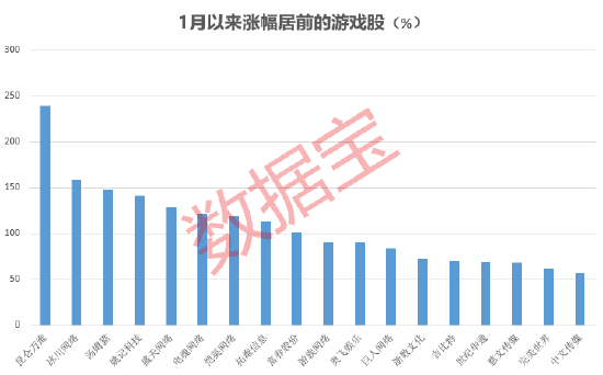 在传媒细分行业中,申万游戏行业指数涨幅高达78.14%,排名居首。今年以来,A股36只游戏概念股中,昆仑万维、冰川网络、汤姆猫、姚记科技等9股股价翻倍,其中昆仑万维以近2.4倍的涨幅,排名第一。此外,仅ST美盛(维权)、卧龙地产、盛讯达累计录得下跌。