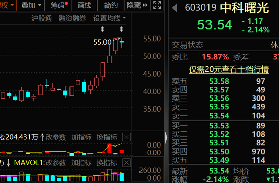 次日,中科曙光全天基本在绿盘运行,收盘跌幅2.14%。业内纷纷谣传,“章盟主”的“梭哈魔咒”来了,换言之,国泰君安江苏路的“游资”在中科曙光“暂时套牢”。