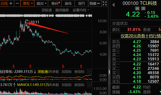 第二次是,2021年1月,买入TCL科技10亿元;第二天见顶;