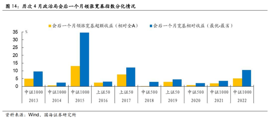 4月公布的一季度GDP数据好于预期,且会议基调偏松,稳增长预期加强的年份为2014、2018、2022三年,会后一个月市场皆上涨,且均为中小盘风格占优。2014年4月政治局会议将稳增长置于各项工作任务之首,政策基调宽松。会后一周市场上涨0.19%,风格上为小盘成长占优。会后一个月市场震荡上行0.3%,小盘成长仍然占优,申万小盘、中证1000、中信成长指数分别上涨0.6%、0.9%、1.7%。2018年中美贸易摩擦升级,外部压力渐显,4月会议再度强调“扩大内需”,货币政策方面删掉了“管住货币供给总闸门”的表述。会后一周市场上涨0.24%,风格上为中小盘占优。会后一个月市场上涨2.8%,中小盘和消费占优,小盘指数、中证500、消费风格分别上涨2.2%、2.9%、7.0%。2022年4月中央政治局会议仍谈及增长目标,宏观政策调节力度加大,地产继续边际放松。会后一周市场上涨1.36%,小盘成长占优。会后一个月市场上涨4.4%,小盘与周期风格占优,小盘指数、中证1000、周期风格分别上涨7.9%、9.6%、9.6%。
