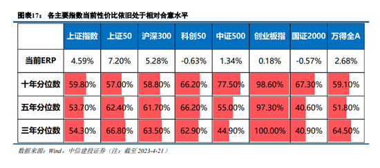 各主要指数性价比依旧处于相对合意水平,保持战略看多。近期一个值得注意的现象是,尽管经济数据接连出炉验证复苏趋势向好,十年期国债收益率却连续走低,其中有宏观价格指标偏弱引发政策加码宽松预期、部分金融机构配置债市意愿较强等等原因。以此作为基准,股票市场部分指数相对于债券的超额回报依旧明显,估值回落空间非常有限。如果基于纵向比较下的各主要指数ERP历史分位来看,整体市场当前ERP水平所处过去十年的分位数大致在60%左右,而前期表现相对低迷的创业板指数,所处过去3、5、10年的分位数都接近100%,即当前估值水位可能处于较为合意区间。