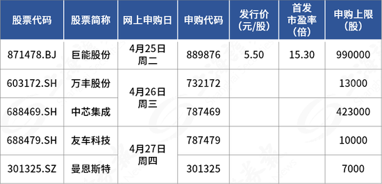 据目前安排,若无变化,下周(4月24日至28日)有5只新股可申购,包括科创板2只、创业板1只、北交所1只、沪市主板1只。