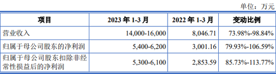曼恩斯特招股书称,预计2023年一季度实现净利润5400万元至6200万元,同比增长79.93%至106.59%。