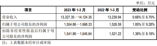 万丰股份招股书称,预计2023年一季度实现净利润1554.86万元至1668.33万元,同比增长1.85%至9.28%。