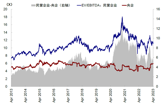 图表15:港股央企EV/EBITDA较民营企业持续偏低