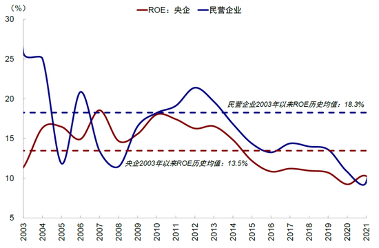 图表8:港股上市央企ROE水平整体低于中资民营股,但相对稳定