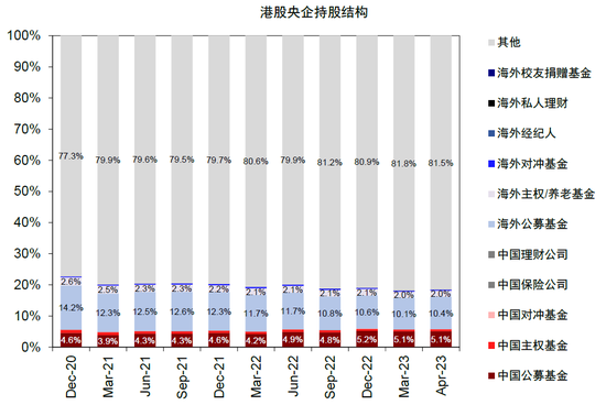 图表22:海外投资者港股央企持股市值占比未见明显抬升
