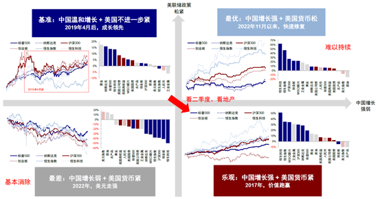 图表3:中国增长强弱和美国政策松紧这两个变量的不同组合决定了四条路径