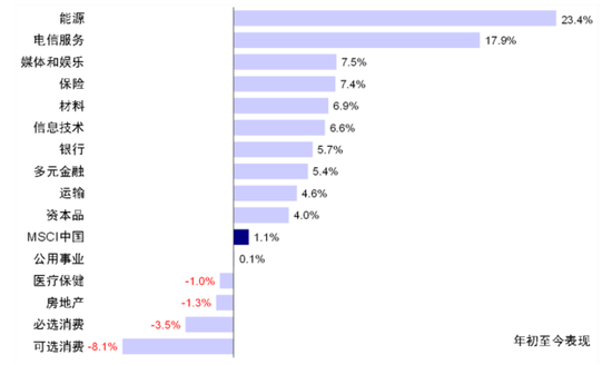 图表2:年初以来港股高股息标的相关板块能源、电信等走强