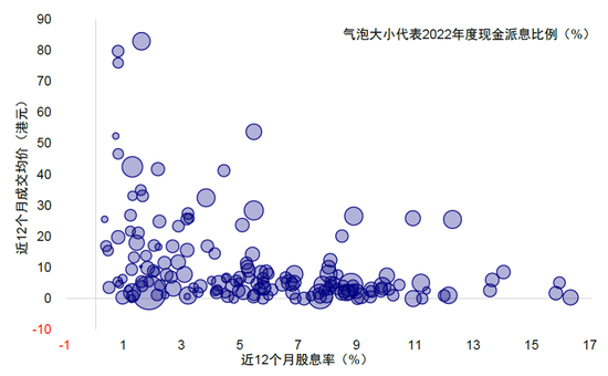 图表6:港股市场部分标的股息率高是由于股价较低,较高的股息率不一定对应较高的派息水平…