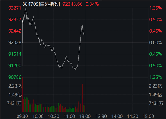 白酒板块也直线拉升。