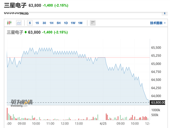 25日早盘,韩国半导体巨头三星电子开盘之后快速跳水,截至发稿时跌超2%。总市值434.7万亿韩元(约合人民币2.2万亿)。