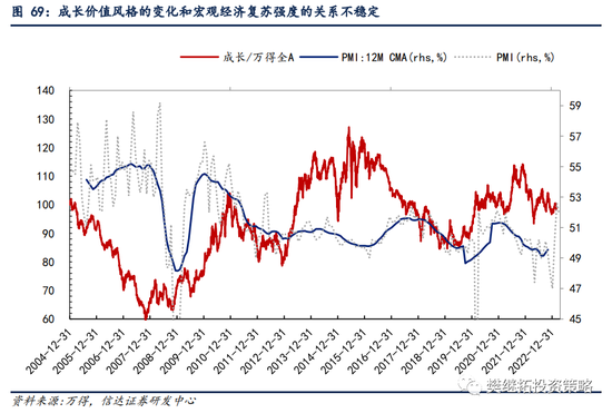3、成长价值风格的变化取决于盈利相对优势,和宏观经济复苏强度的关系不稳定。