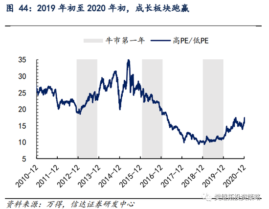 1)从投资时点来看,熊转牛之后,市场风格大概率出现切换。具体来看,2012年初市场风格由价值转为成长,2016年初市场风格由成长转为价值,由小盘转为大盘,2019年初市场风格由价值转为成长,这些风格切换的时点均与牛熊市切换的时点吻合。