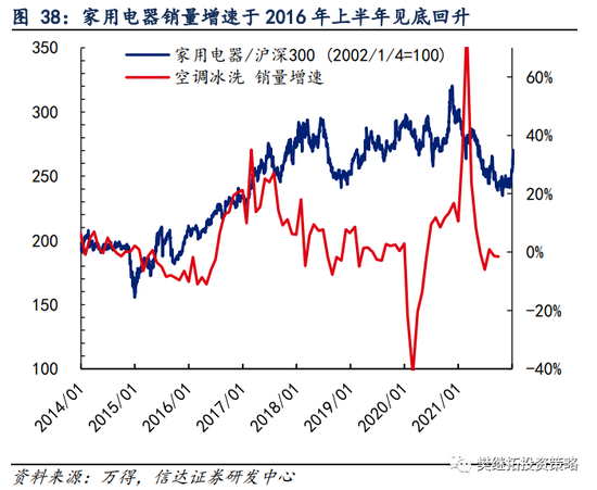 从需求视角来看,食品饮料行业与家电行业的需求均有触底回升。1)白酒行业转涨的产业逻辑是,白酒行业需求端转为大众消费、高端白酒价格抬升、龙头企业份额提升,白酒行业进入新一轮的复苏周期。从行业盈利能力的角度来看,食品饮料行业超额收益大幅攀升与ROE的企稳回升基本一致。2)2016年初,家电行业下游需求触底回升。此前,2014年至2015年,家电行业因库存问题出现价格战,进入2016年之后,终端销售价格企稳、家电企业库存回补相继出现,家电行业产业格局逐步改善。