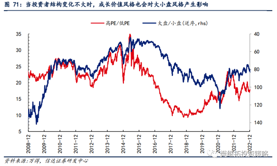 4、大小盘风格主要取决于相对估值与投资者结构的变化。