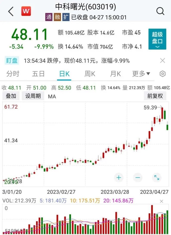 4月27日,AI算力龙头中科曙光再度跌停,成交额达105.48亿元。