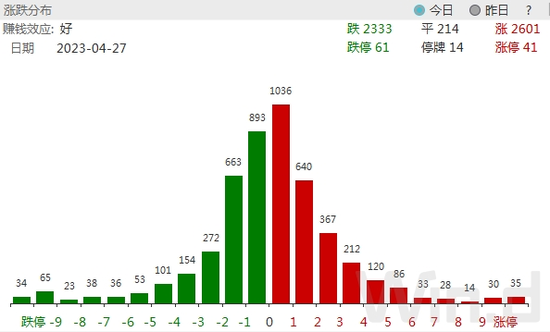 截至4月27日收盘,上证指数涨0.67%报收于3285.88点;深成指涨0.28%报收于11217.00点;创业板指涨0.58%报收于2307.27点,万得全A总成交1.05万亿。