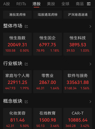 5月5日,港股反弹。恒生指数全日涨100点,涨幅0.5%, 报20049.31点。恒生国企指数涨78.95点,涨幅1.18%。恒生科技指数涨39.53点,涨幅1.03%。大市全日成交总额982.75亿港元。