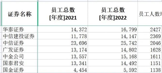 东方财富Choice金融终端数据显示,上述52家券商中,截至2021年底,员工人数为294235人,而到2022年底,员工人数增加至314304人,增加了20069人。说明证券行业仍对人才具有较强吸引力。
