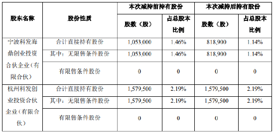2022年11月,双枪科技发布减持公告称,科发海鼎、科发创投拟减持合计不超过1,316,250股,不超过总股本的1.83%。截至2022年底,科发海鼎累计卖出105,900股,报告期末持有947,100股。
