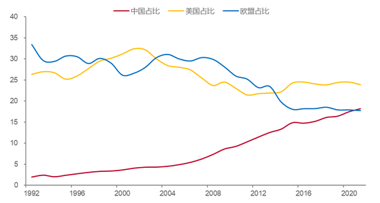 我国改革开放见成效也是需要很长时间。例如从改革开放1978年到1992年这14年时间里面,我国GDP占全球份额基本上没有什么上升,1992年我国的人均GDP还落后于印度。但是从1992年到现在为止,中国的GDP从占全球比重的2%提高到18%,这还是很非常震撼的。因此,这个看似没有变化的过程实际上是在积蓄力量。到2022年,我国人均GDP水平是印度的五倍以上。