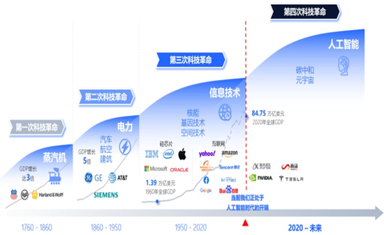 第三次科技革命中,全球GDP从1960年全球1.39万亿美元,增加到2020年84.75万亿美元。那么,如今已经开启的可能是以人工智能为代表的第四次工业(科技)革命,还包括石墨烯、元宇宙、量子、可控核聚变、清洁能源以及生物工程等技术。