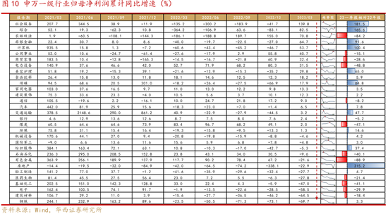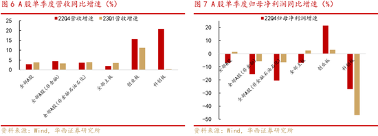 2)单季度来看,一季度全A净利润增速转正,全A(非金融石油石化)营收增速已出现改善,但净利润增速回升偏慢。在去年低基数下,预计二季度A股利润增速将大幅改善。22Q4和23Q1全A营收增速分别为2.9%和3.8%,全A(非金融石油石化)营收增速分别为3.6%和3.9%,23Q1较22Q4均有所改善;22Q4和23Q1全A归母净利润增速分别为-7.0%和1.4%,全A(非金融石油石化)归母净利润增速分别为-20.5%%和-6.5%;