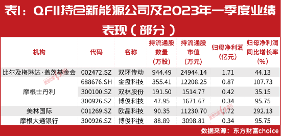 除了比尔及梅琳达·盖茨基金会,其他多家QFII也表现出了对新能源个股的青睐。