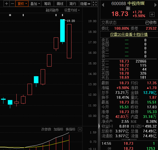 中视传媒7日收获5板;5月份以来,该股于7个交易日大涨58%。中视传媒是中央电视台旗下,最早一批进入资本市场的国有文化传媒企业,控股子公司北京中视北方影视是国内最早进入高清晰度电视制作领域的企业。