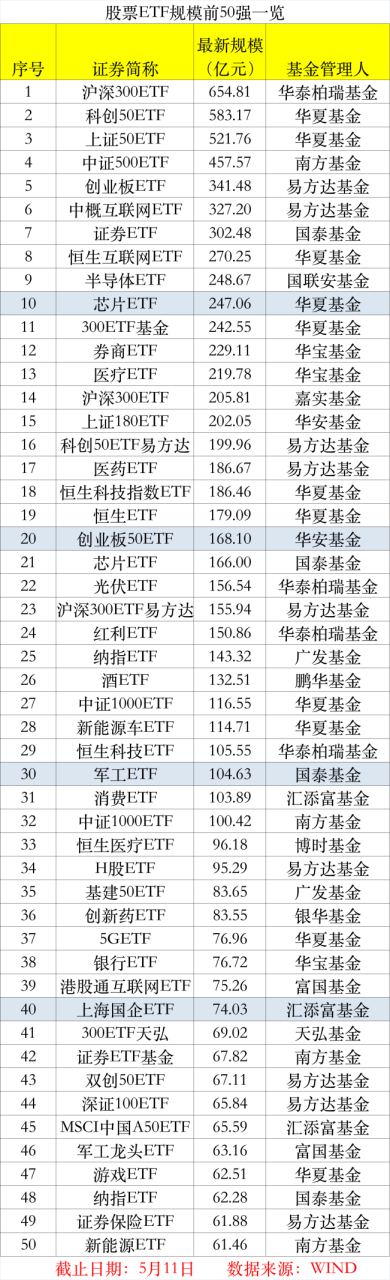 5月11日,全市场727只股票ETF(统计股票ETF和跨境ETF)总管理规模1.37万亿元。