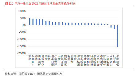4.行业现金流层面:商贸零售、房地产和社会服务盈利质量表现较差,部分行业自我造血能力增强