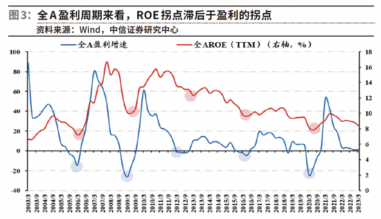 从A股历史上的盈利底与ROE底部之间的时间和形成原因来看,盈利底与ROE底部之间的时间间隔大致在1-3个季度,时间差长短取决于A股后续盈利回升的斜率。