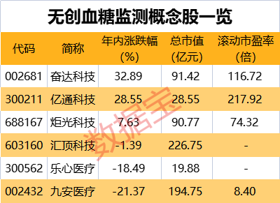 该消息直接刺激A股相关概念股大涨,其中炬光科技当日20cm涨停,奋达科技10%涨停,乐心医疗盘中一度大涨超14%。与此同时,“国产血糖仪一哥”三诺生物当日盘中一度跌幅超11%。