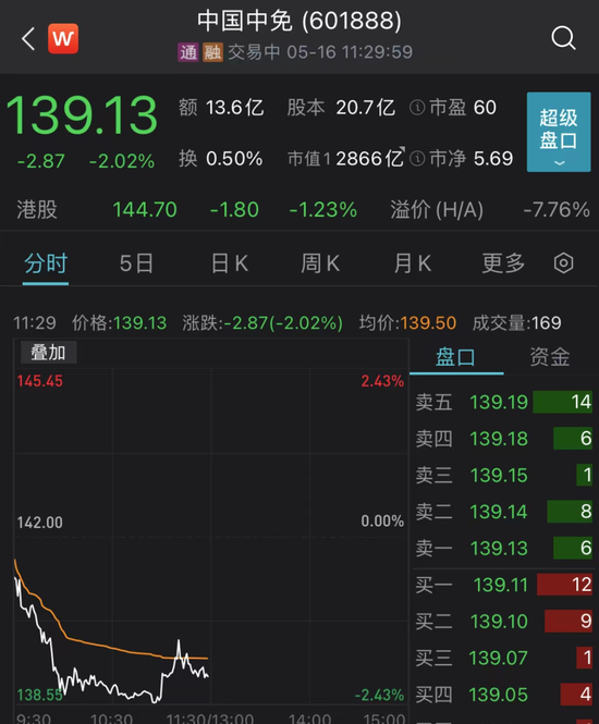 中国中免盘中再创阶段新低