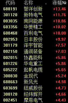 风电板块也爆发,智洋创新涨超13%、新特电气涨超11%。