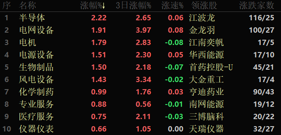 从早盘表现强势的半导体行业看,交易中的141只成份股有116只上涨,其中,有22只个股涨幅超5%。资金方面,有14.6亿元大单资金净流入该行业,居各行业第1位。