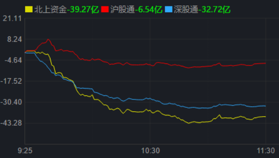 从资金面来看,5月16日上午,北上资金净买入金额达-39.27亿元,其中,沪股通净买入-6.54亿元,深股通净买入-32.72亿元。