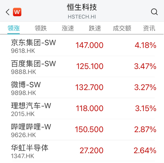 港股方面,恒生科技指数涨超1%。科技股走强,京东涨超4%,微博、百度、腾讯等纷纷上涨。消息面上,京东集团获海外对冲基金一季度大幅加仓其美股ADR。