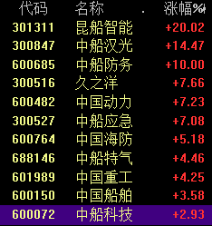 今天上午,中船系暴涨,昆船智能20%涨停,中船汉光涨超14%。