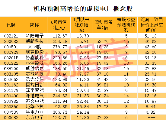 具有高增长潜力的虚拟电厂概念股名单