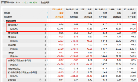 被称为视觉领域“小巨人”的罗普特,近来业绩表现却不稳定。2022年年度报告,该公司年度实现营业收入1.69亿元,同比下降76.64%;归母净利润亏损2.02亿元,同比由盈转亏。另外今年一季度,罗普特实现营业收入2426.53万元,同比增长122.45%;但归母净利润亏损1719.68万元,同比下降34.98%。