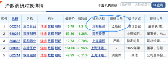 比如,2023年4月末,一位名叫孟斯硕的人士,“代表”泽熙投资参加三全食品的调研。