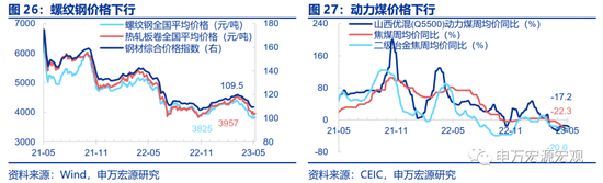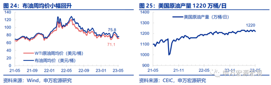 9)工业品价格:油价小幅回升,国内钢价、煤价下行。截至5月11日,布油周均价小幅回升0.3%至75.8美元/桶,动力煤价格回落0.6%至995元/吨。螺纹钢价格下行0.6%至3825元/吨。截至5月12日,美国原油产量1220万桶/日。