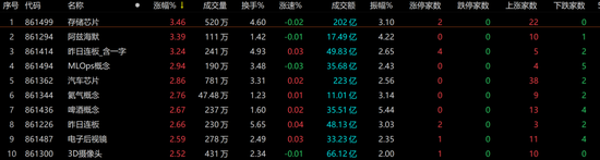 概念股方面,存储芯片、阿兹海默、MLOps概念、汽车芯片、氦气概念、啤酒概念等板块涨幅居前。下跌方面,数字阅读、AIGC概念、Web3.0、快手概念、光通信概念跌幅居前,ChatGPT概念、虚拟数字人等AI相关概念再陷调整。