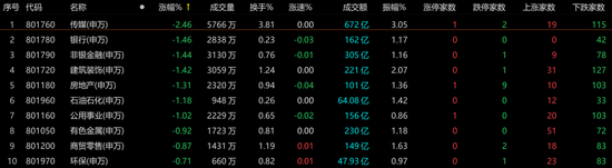 盘面上,31个申万一级行业中11个行业板块收涨,20个行业板块收跌。电子、家用电器、医药生物、食品饮料、美容护理等行业板块涨幅居前。下跌方面,传媒板块领跌,银行、非银金融、建筑装饰、房地产、石油石化、公用事业等板块跌幅居前。