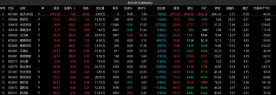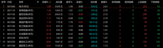 盘面上,电子板块表现不俗,以1.89%的涨幅领涨各行业板块。电子板块内,253只个股收涨,55只个股收跌。