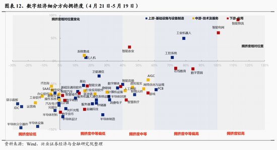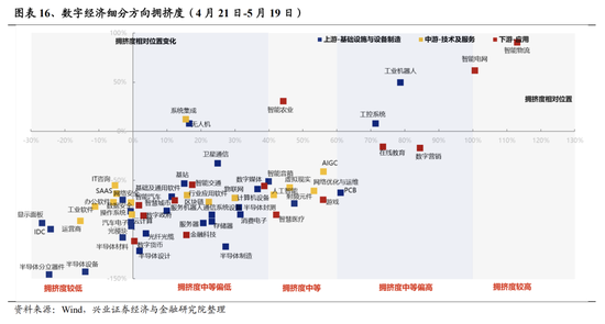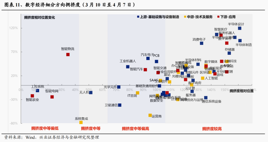 我们划分的“数字经济”60大细分行业中,综合拥挤度、景气度、估值与机构持仓,当前可关注:服务器、光模块、半导体、机器人、人工智能、运营商、金融科技等。