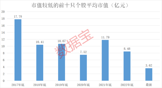 没有那么多公司借壳,那么壳资源价格也必然下降。数据显示,剔除北交所个股后,2017年底沪深两市市值较低的前10只个股,平均市值接近18亿元;2020年底下降至不到8亿元;2022年底维持在9亿元以下;最新则只有不到4亿元。
