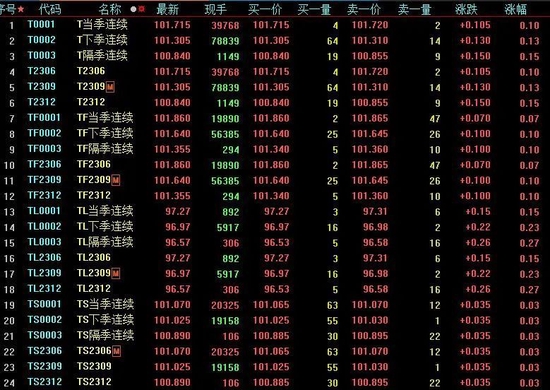 周五,国债期货全线收涨,30年期主力合约涨0.23%,10年期主力合约涨0.13%,5年期主力合约涨0.10%,2年期主力合约涨0.03%。